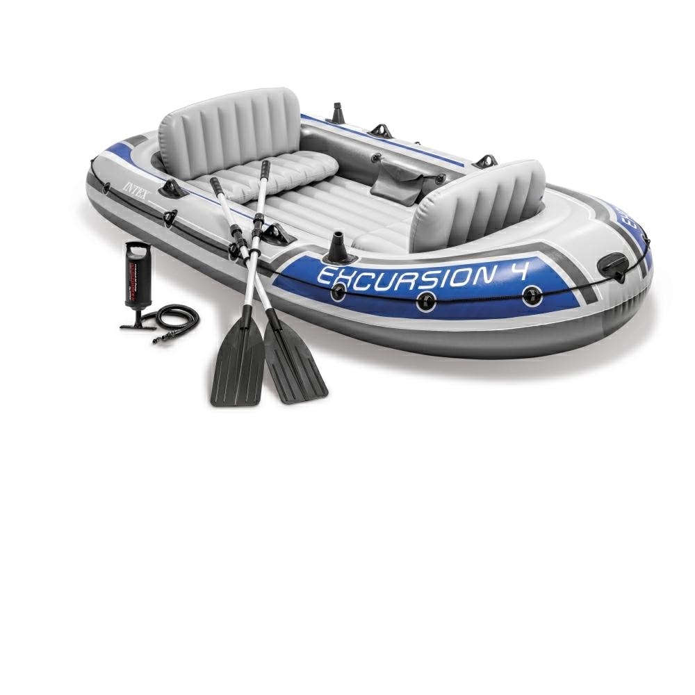 Boot Excursion 4 Set 68324NP von INTEX ist das ideale Begleiter für Deine Bootsausflüge. Die Farbkombination Grau und Blau verleiht diesem Boot ein ansprechendes Aussehen. Hergestellt aus strapazierfähigem PVC-Material, ist es langlebig und bietet Sicherheit auf dem Wasser.