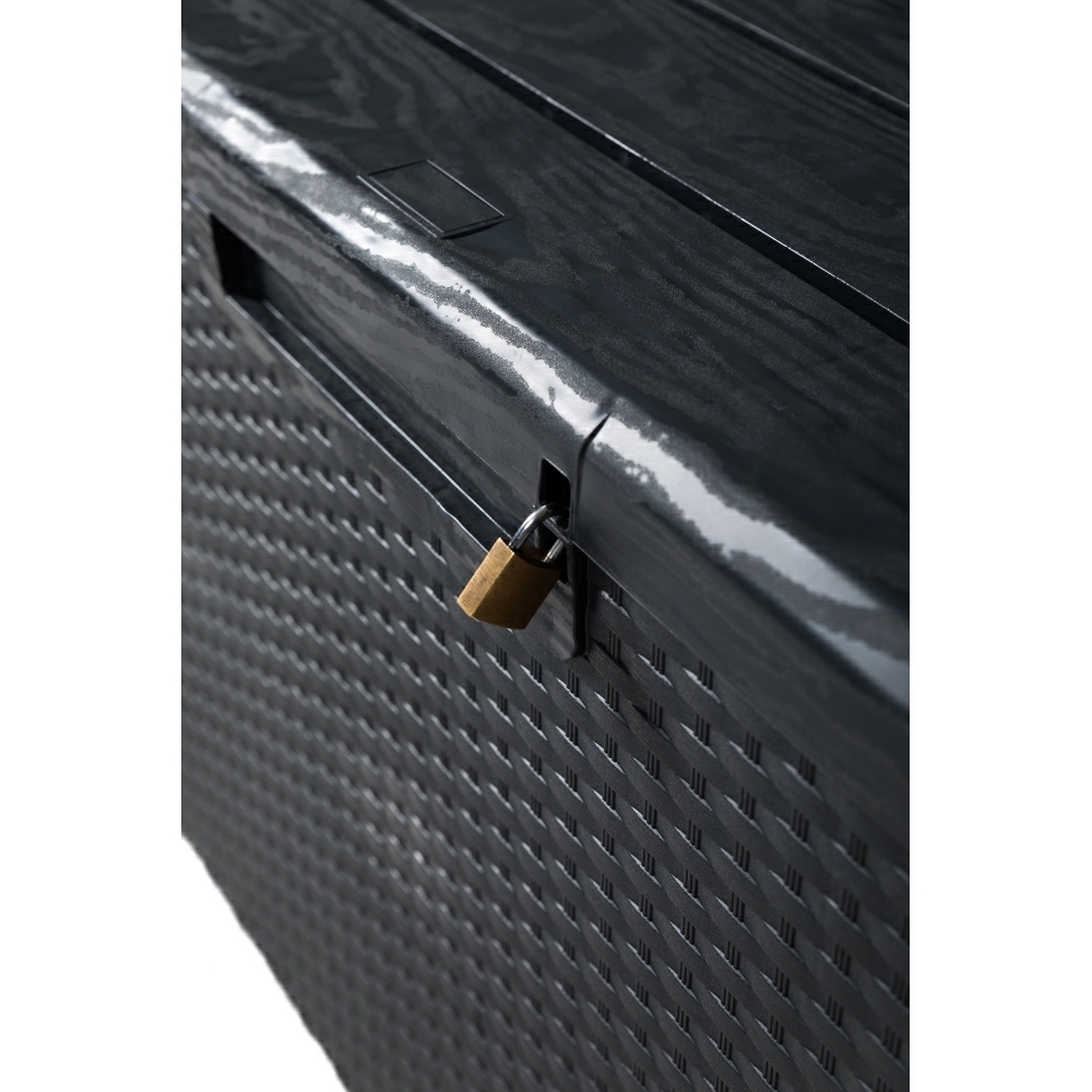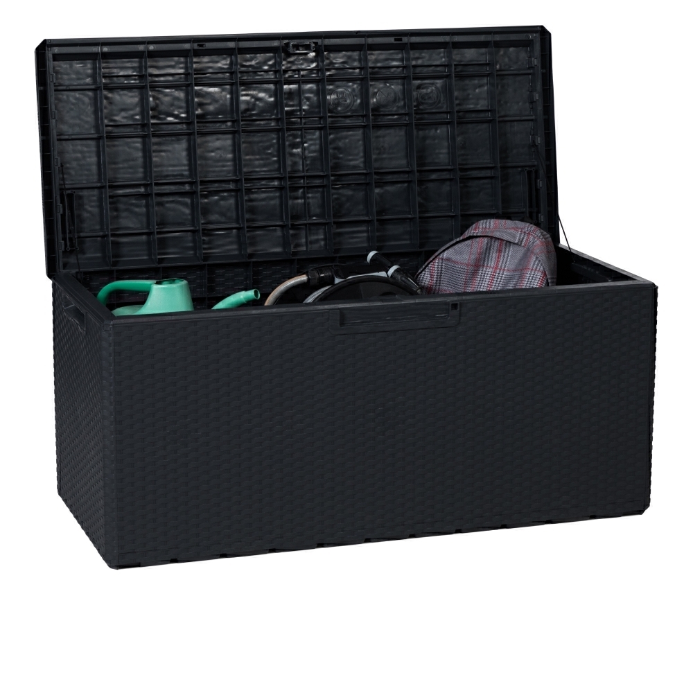 Kissenbox Kollektion Kissenbox Portofino DUNKEL ist die ideale Aufbewahrungslösung für Ihre Kissen im Garten oder auf der Terrasse. Hergestellt von TOOMAX aus hochwertigem 100% recyceltem Polypropylen, bietet diese Kissenbox nicht nur ausreichend Stauraum, sondern ist auch umweltfreundlich.
