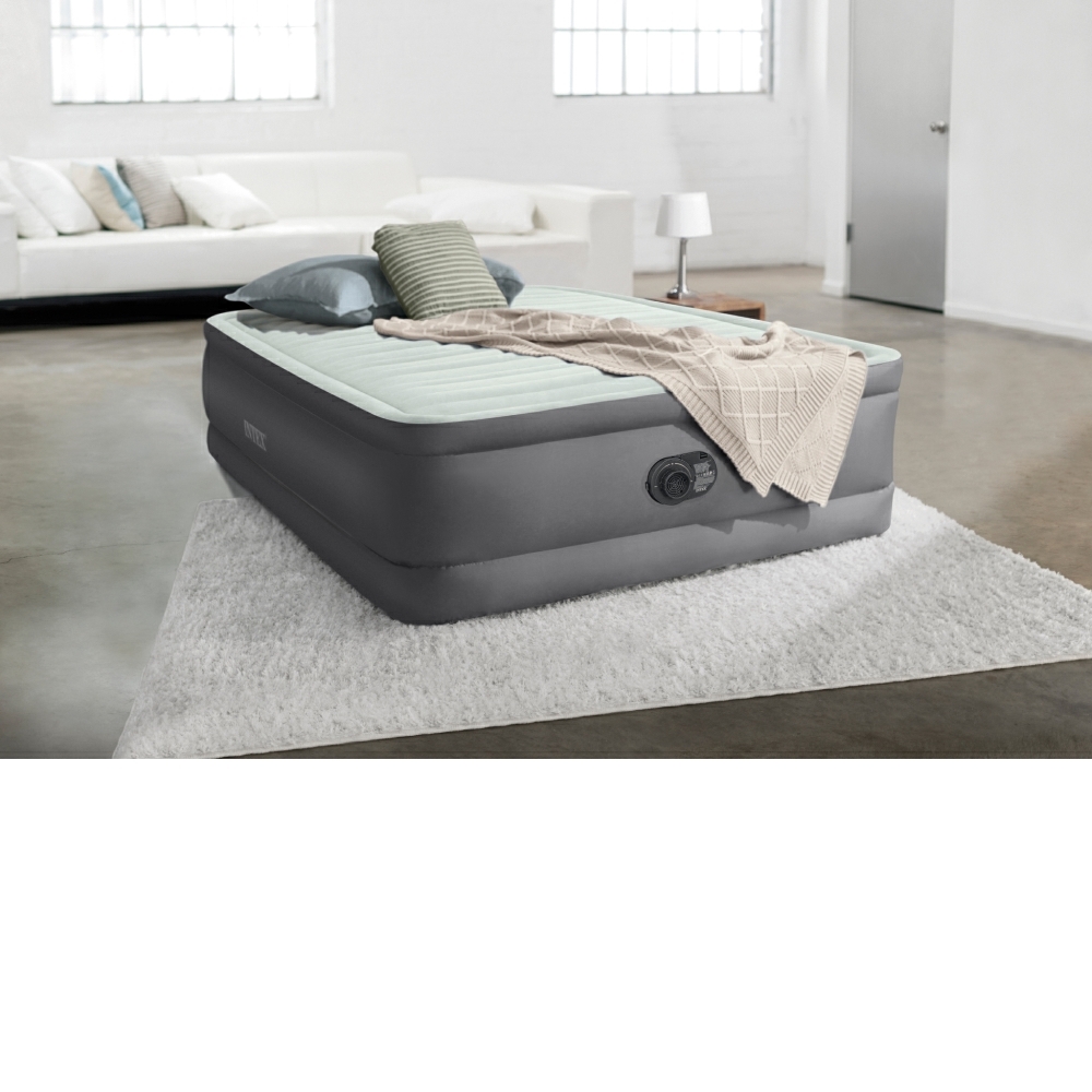 LETTO D`ARIA ELEVATO FULL PREMAIRE MIT FIBER-TECH von INTEX ist die perfekte Lösung für erholsamen Schlaf, sowohl drinnen als auch draußen. Dank der innovativen Fiber-Tech-Technologie bietet dieses Luftbett Komfort und Langlebigkeit zugleich.