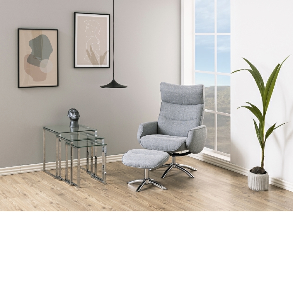 Mit dem Recliner kannst du dich zurücklehnen und entspannen, während der Hocker zusätzliche Bequemlichkeit bietet. Das Set ist nicht nur funktional, sondern fügt auch eine moderne Note zu deiner Einrichtung hinzu.