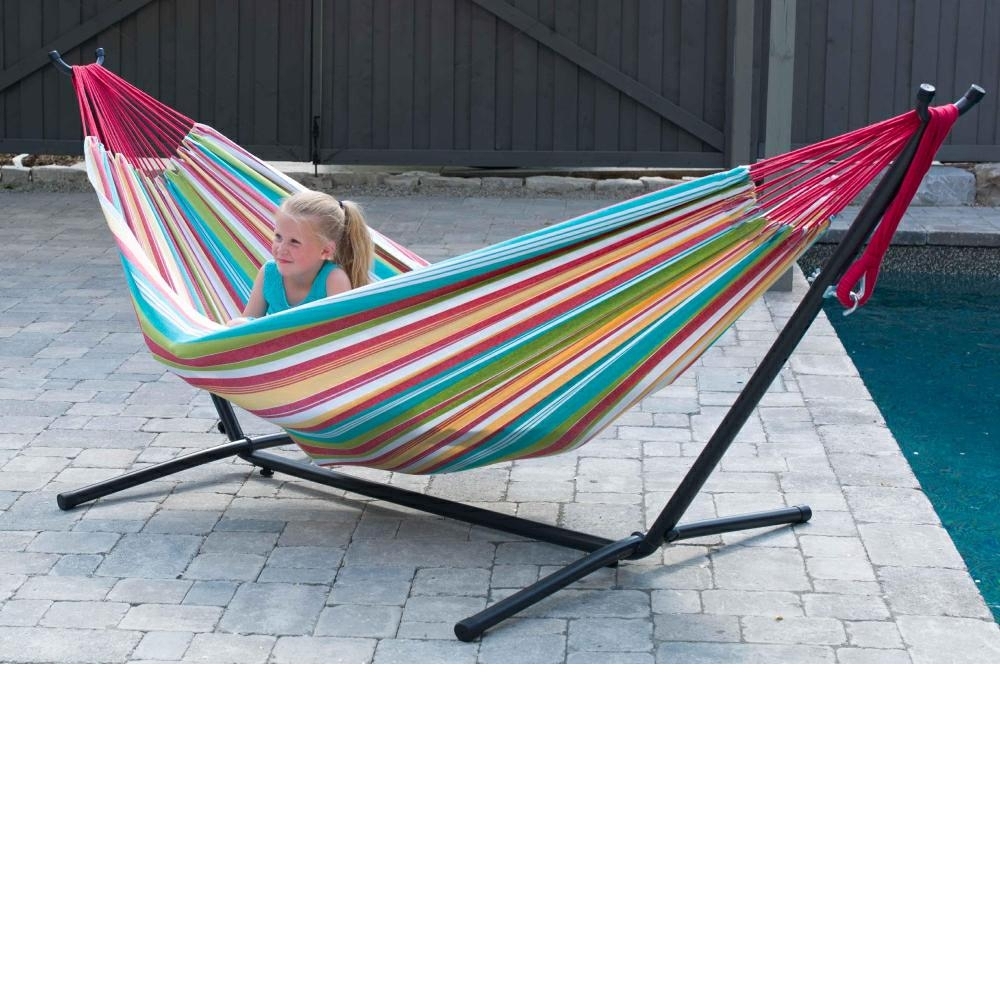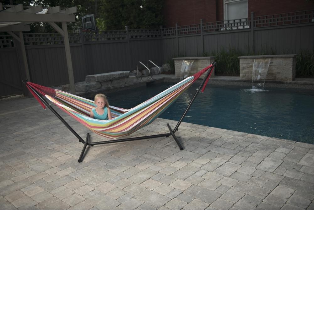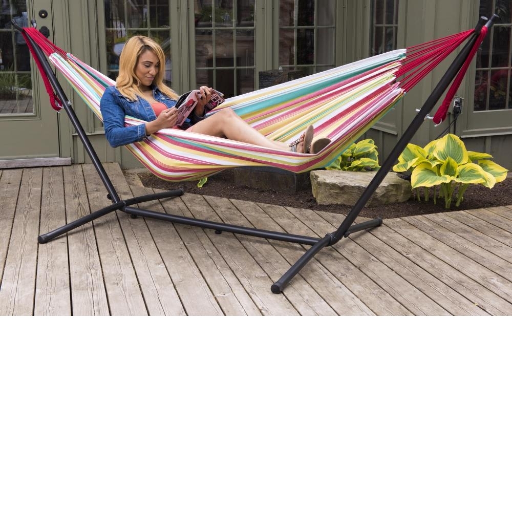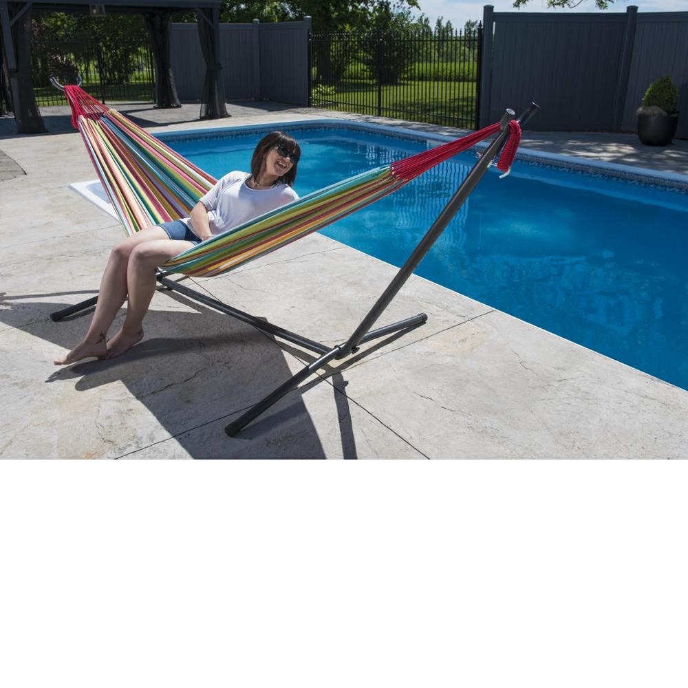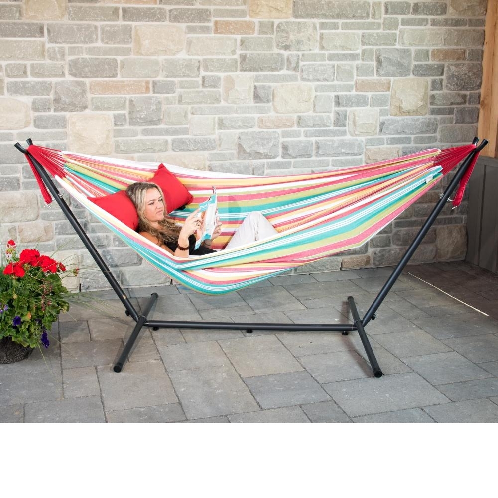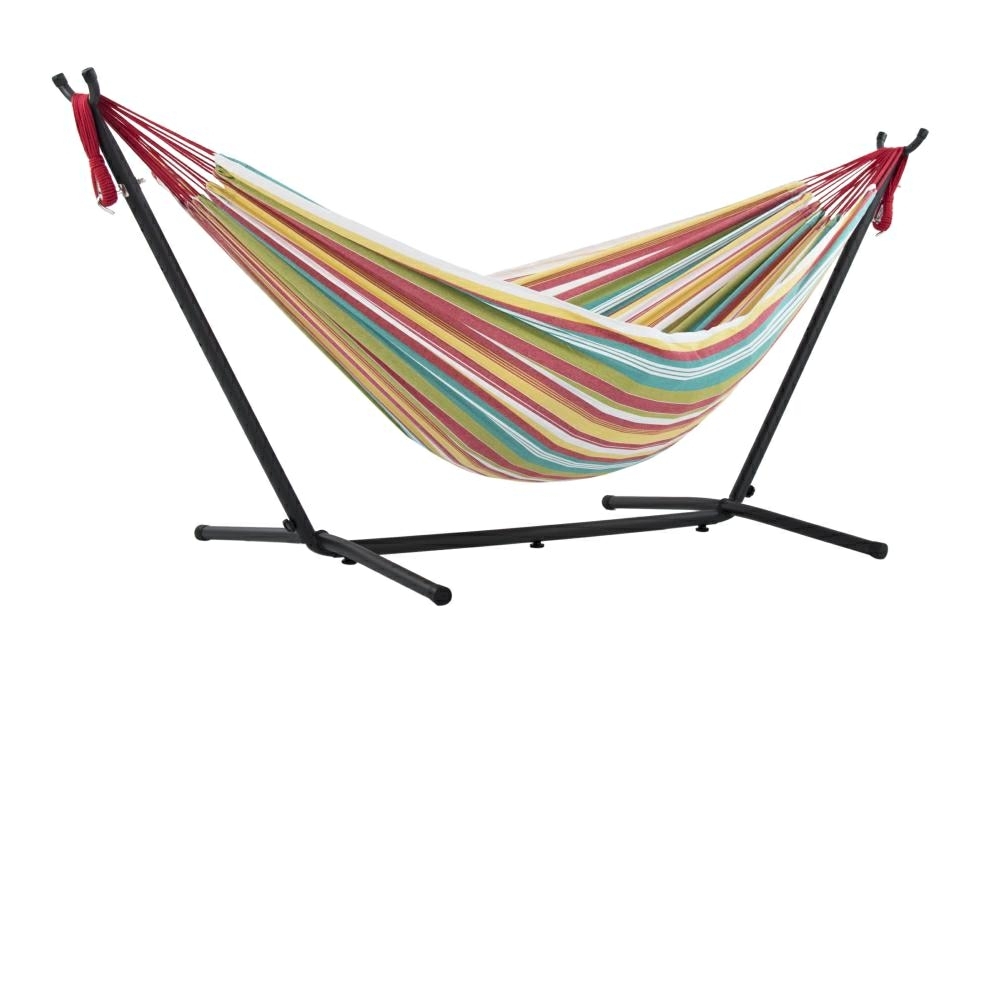 Vivere Doppel Baumwolle Hängematte mit Hängemattengestell 250 cm Rot, Grün, Gelb – max. Belastbarkeit:Vivere`s Combo, the Double Hammock with Sta