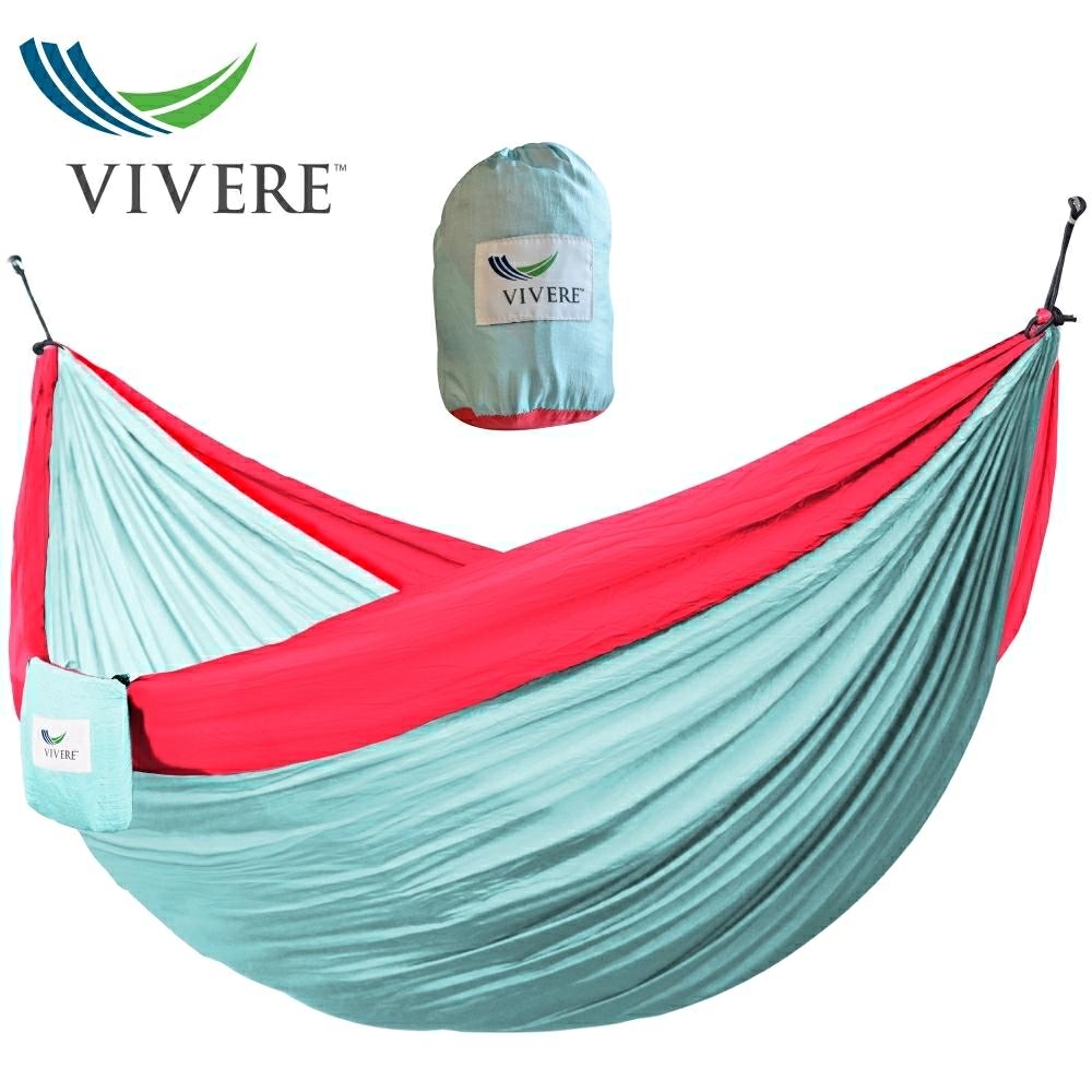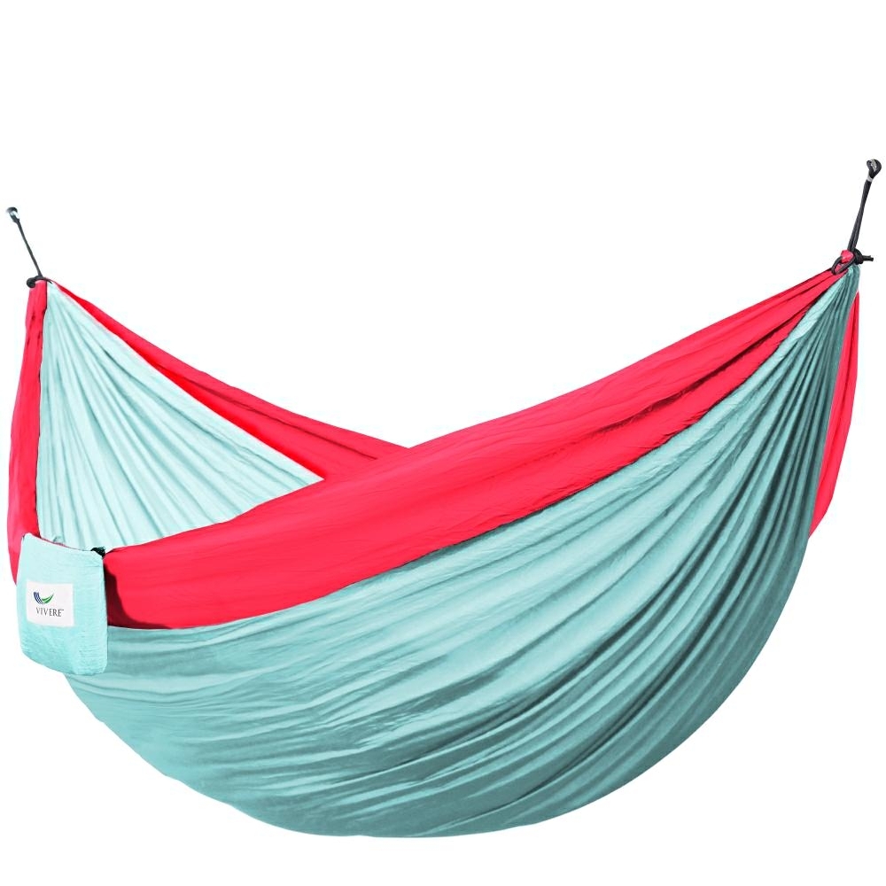 Vivere Hängematte Nylon Doppel Lt. Blau, Rosa – Die Vivere Hängematte in leuchtendem Blau und zartem Rosa ist perfekt für entspannte Stunden im Garten oder unterwegs geeignet. Mit einer maximalen Belastbarkeit von 181 kg bietet sie ausreichend Platz für zwei Personen, um sich gemütlich zu entspannen.